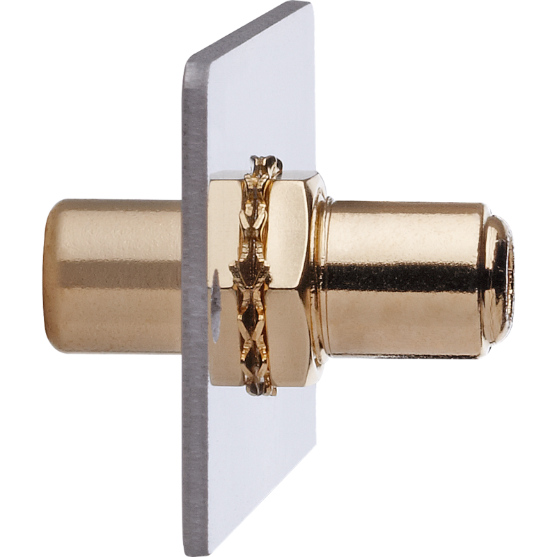 Video Multimedia Einsatz mit Lötanschluss. Für den Anschluss eines Video-Cinchkabels auf der Frontseite. Auf der Rückseite befindet sich dann der Lötanschluss. Der Einsatz ist mit 24 Karat vergoldeten Kontakten. In Kombination mit dem Montagerahmen können zwei beliebige Multimedia Einsätze (alternativ ein Einsatz kombiniert mit einer Blindblende) pro Rahmen mit Innenmaß 50x50mm montiert werden.